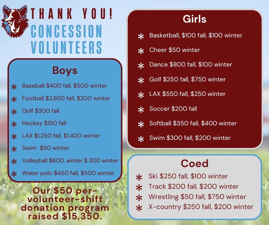 Last school year (2024-25)...our $50 per-volunteer-shift program has successfully raised $20,600 for OHS teams!